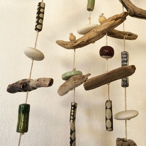 Realizzeremo una campana a vento utilizzando elementi naturali come rametti, bastoni di bambù, cerchi di legno o qualsiasi altro oggetto resistente. Aggiungiamo conchiglie, baccelli, ghiande e sassolini forati, legandoli con del filo.