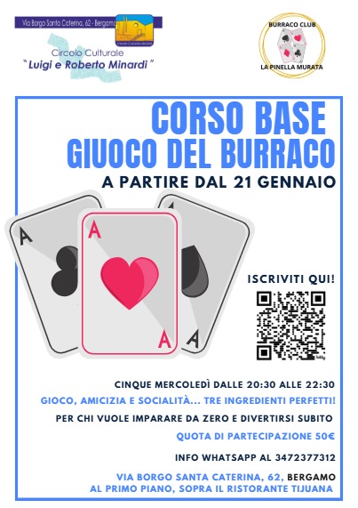 Inizia il corso base per imparare il gioco del burraco al Circolo Culturale Minardi di Bergamo.
