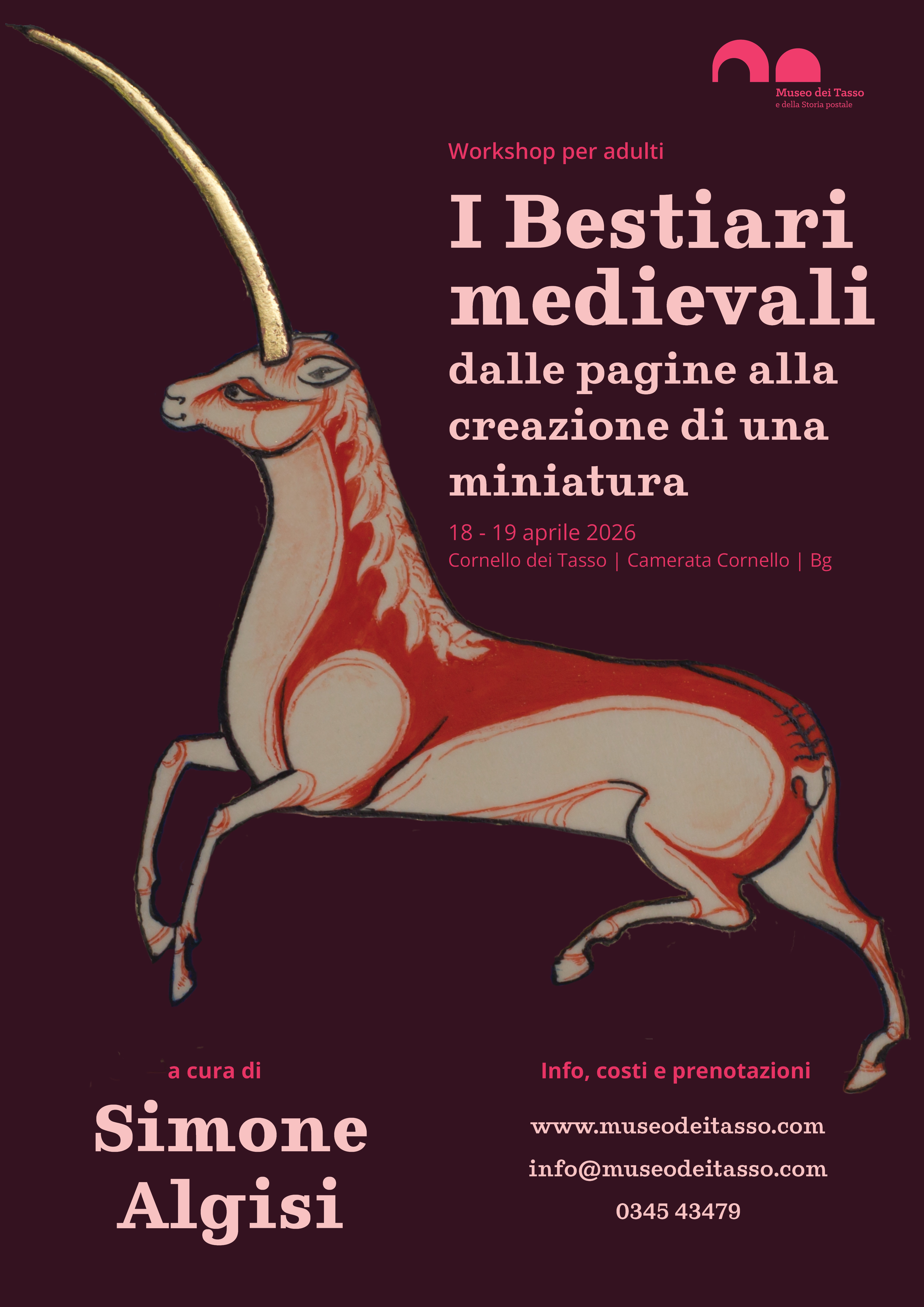 Il Museo dei Tasso e della Storia postale propone un corso sulle tecniche della miniatura, partendo dai bestiari medievali, a cura del miniaturista Simone Algisi.