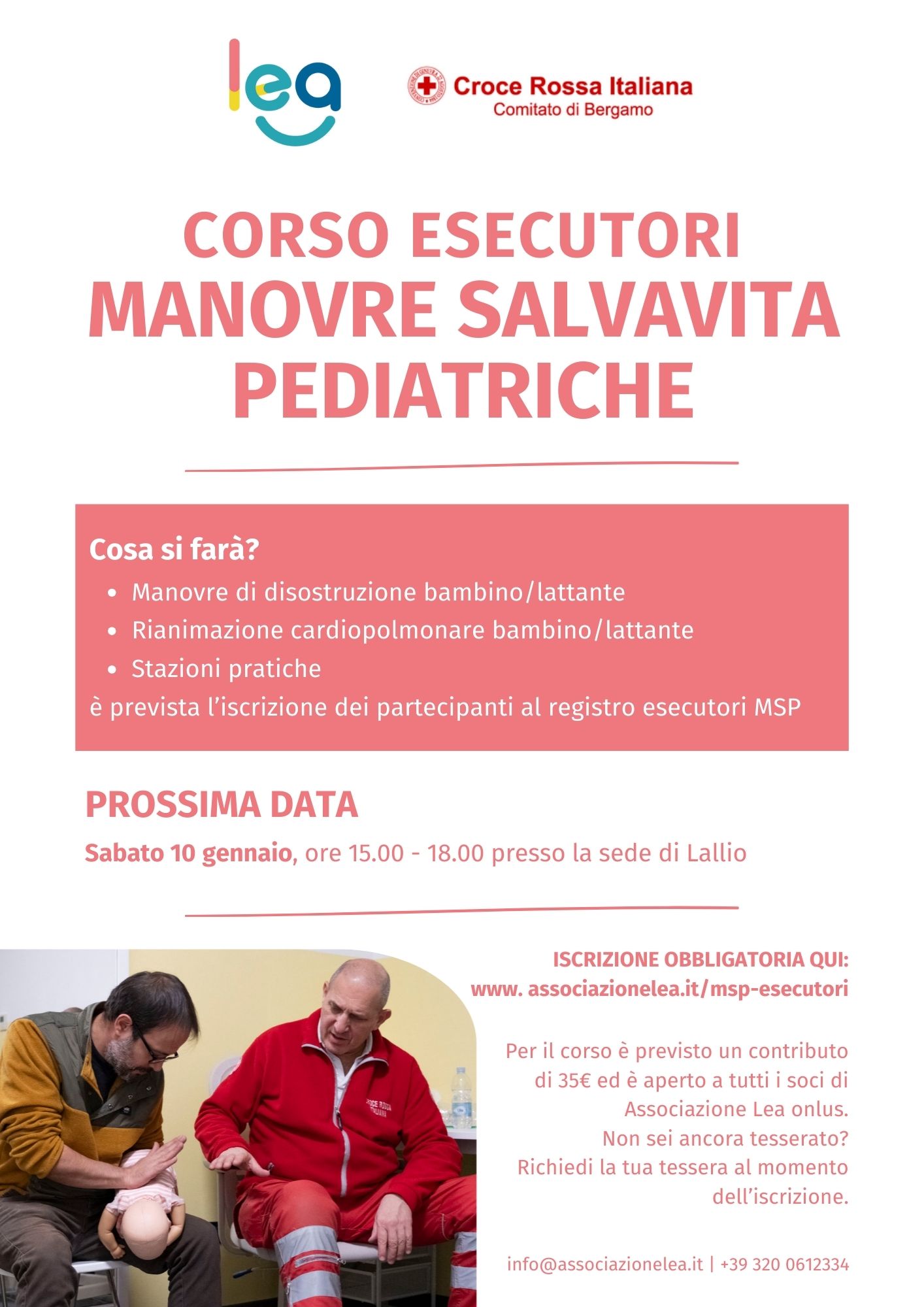 -Il corso è aperto a tutti i soci dell’Associazione Lea Onlus e prevede un contributo di 35 euro. Si terrà presso sede di Associazione Lea a Lallio (BG) in via Don Luigi Palazzolo, 7