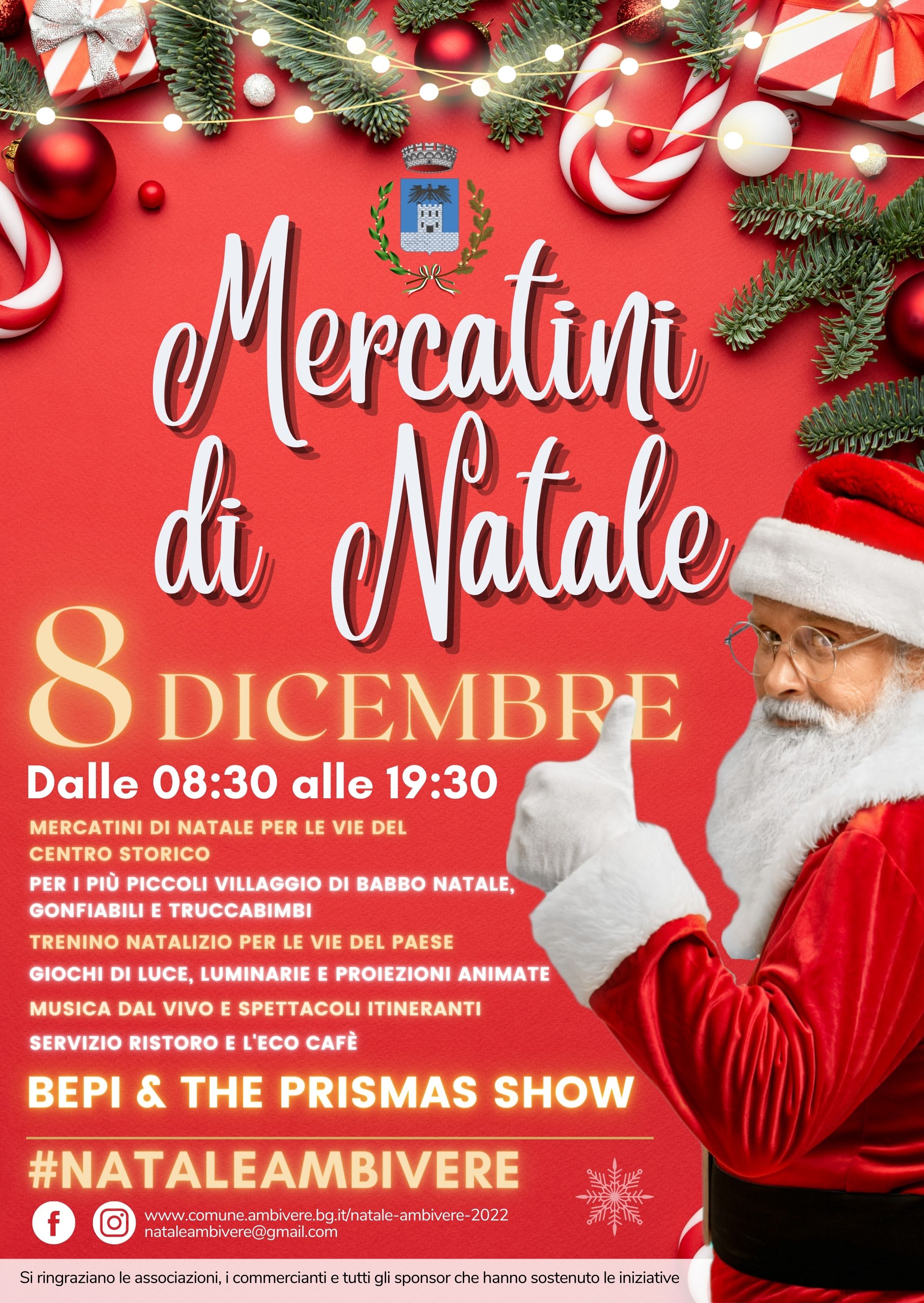 Per festeggiare le festività natalizie, il Comune di Ambivere organizza dei mercatini a tema con cibo, giochi, musica e intrattenimento per tutte le età.
