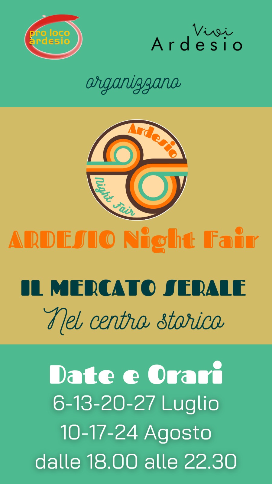 Continua l’estate ardesiana “Ardesio Night Fair", il mercato serale del martedì con intrattenimento musicale e negozi e attività aperte nel centro storico di Ardesio.