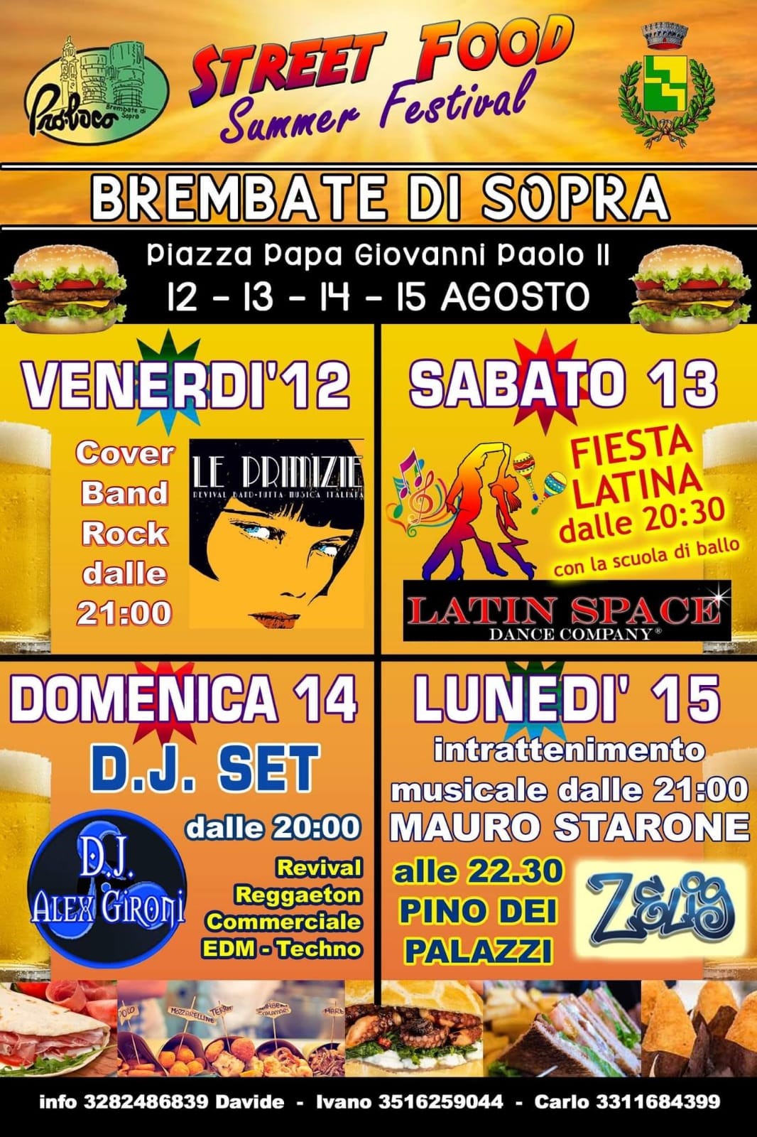 Da venerdì 12 a lunedì 15 agosto torna a Brembate di Sopra in Piazza Papa Giovanni Paolo II lo Street Food Summer Festival, in programma 4 giorni di festa a base di musica, intrattenimento e cibo a volontà.