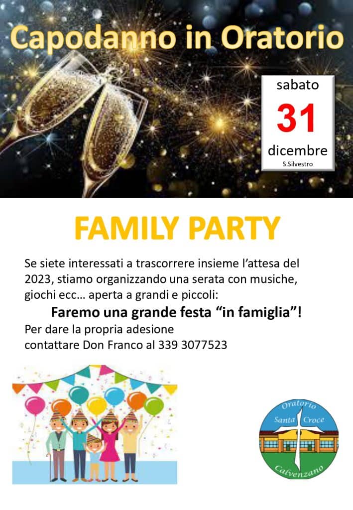 La Parrocchia e il Comune di Calvenzano presentano la festa di capodanno in oratorio. Organizzeranno una serata con musiche, giochi e buon cibo. Aperta a grandi e piccoli.