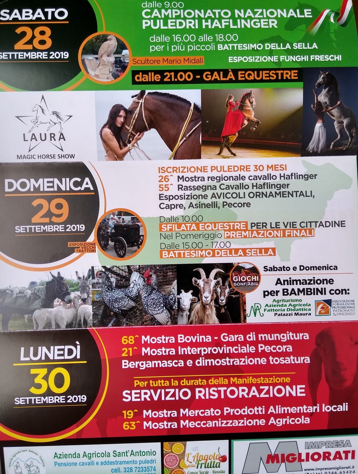 - sabato 28 settembre: dalle 9 campionato nazionale puledri Haflinger; dalle 16 alle 18 per i più piccoli battesimo della sella e dalle 21 galà equestre.