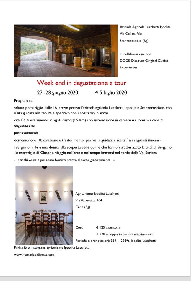 In collaborazione con Doge-Discover Original Guided Experiences e Terre Del Vescovado, l'Azienda agricola Ippolita Lucchetti propone "un weekend in degustazione e tour all'insegna dei sapori, dell'arte, della natura e della cultura del nostro Territorio!!!