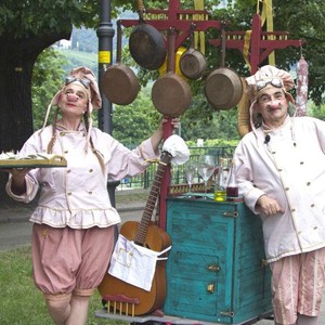 Una Cucina itinerante che diffonde musica e bolle di sapone con i cuochi che offrono “stuzzichini poetici”, cucinano storie ma anche una vera omelette. Cantando un’aria di Verdi, suonano le stoviglie e le bottiglie, la giocoleria diventa un racconto, la cucina un momento di poesia. Ogni cosa si trasforma per narrare e stupire, qualunque angolo diventa un viaggio per trasformare i sogni in realtà!