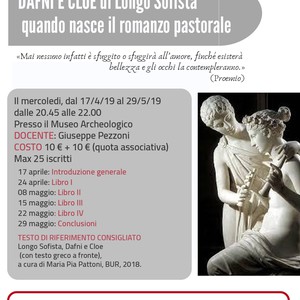 Mercoledì, dalle 20,45 alle 22, presso il Museo Archeologico (biblioteca), si terrà lo speciale incontro «Dafni e Cloe» di Longo Sofista.