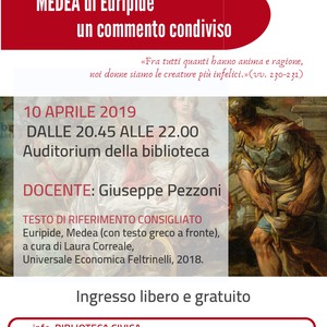In programma per il 10 aprile, presso l'Auditorium della biblioteca di Treviglio, l'incontro culturale «Medea di Euripide».