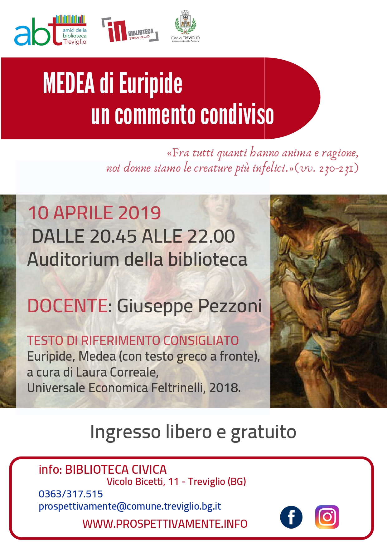 In programma per il 10 aprile, presso l'Auditorium della biblioteca di Treviglio, l'incontro culturale «Medea di Euripide».