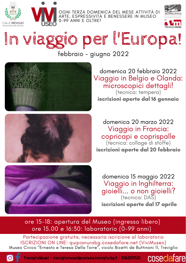 Terzo appuntamento con i laboratori artistici al Museo civico di Treviglio aperti a tutti, per passare un pomeriggio di arte, espressività e benessere.