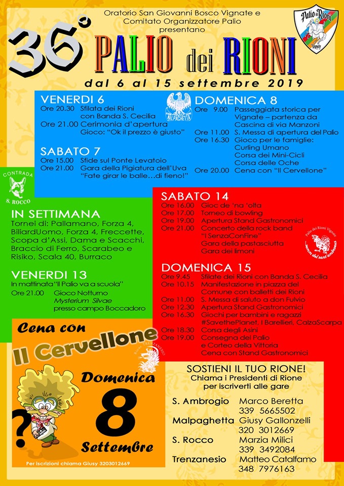 L'Oratorio di San Giovanni Bosco Vignate e il Comitato Organizzatore del Palio presentano la 36esima edizione del Palio dei Rioni.