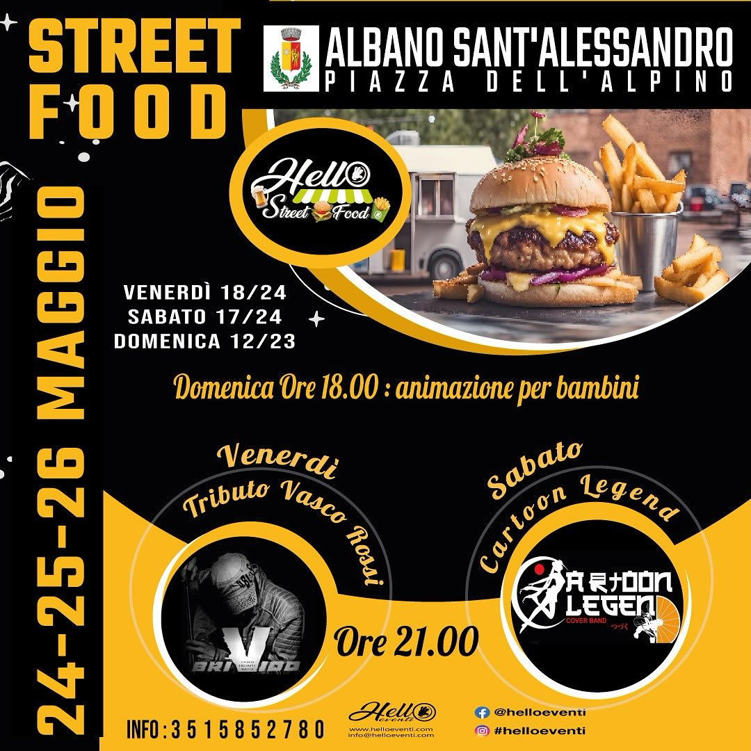 Appuntamento per lo street food del comune di Albano Sant'Alessandro, con ottima musica, cibo ed animazione per i più piccoli.