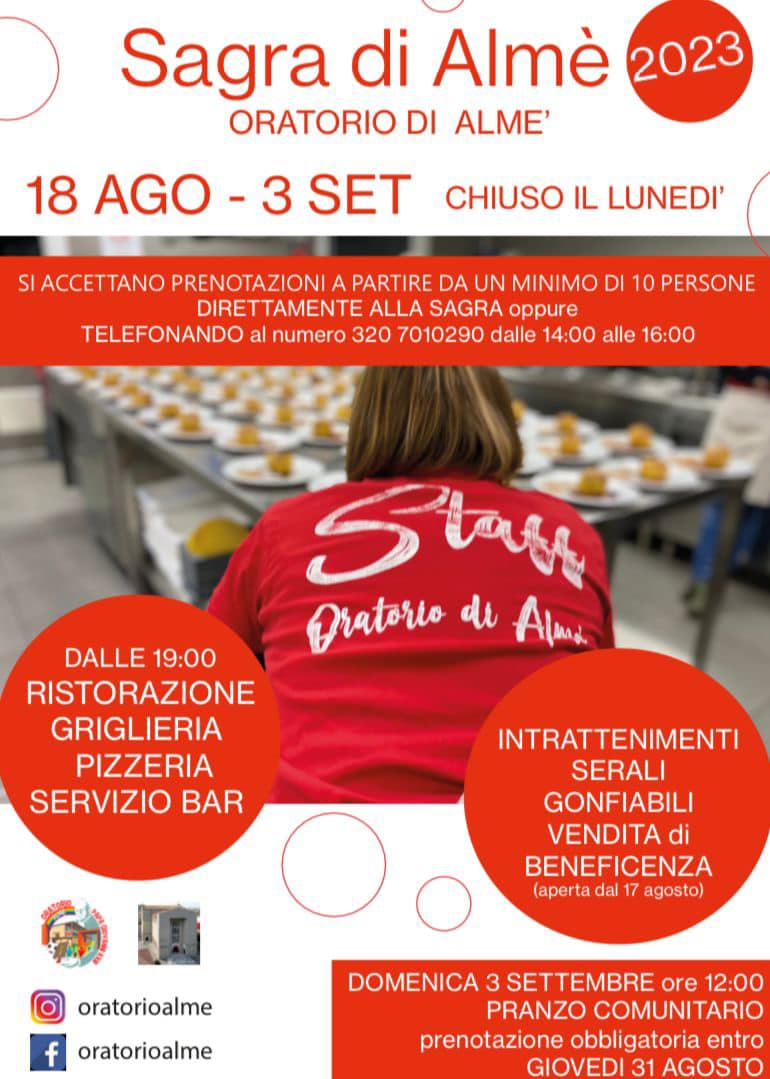 Torna da venerdì 18 agosto fino al 3 settembre la Sagra di Almè!