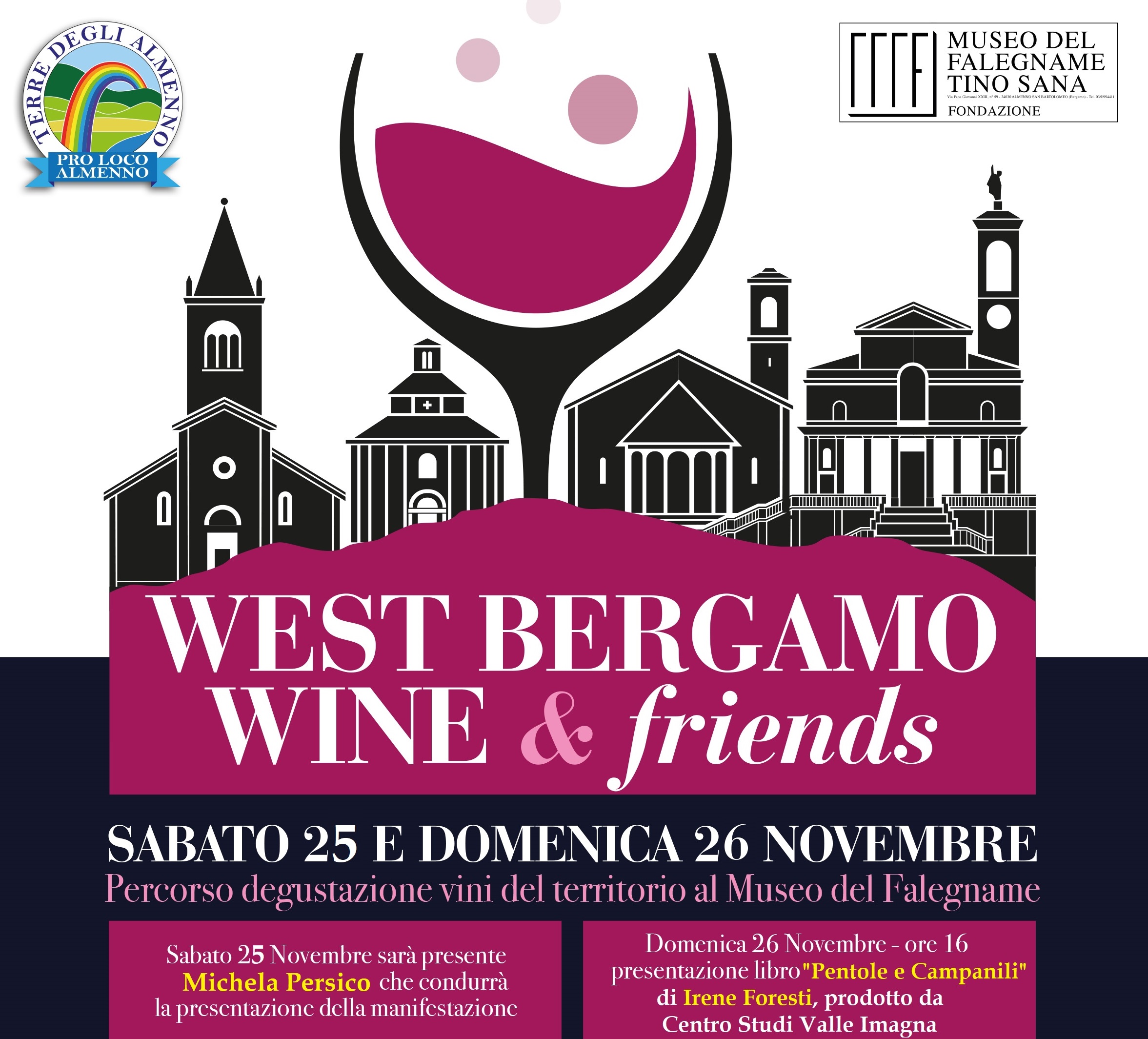 I produttori saranno disposti sui tre livelli del Museo e prenderanno il via sabato 25 novembre dalle ore 17 alle ore 23 e proseguiranno per l’intera giornata di domenica 26 novembre dalle ore 11 alle ore 19. Sabato sarà presente la presentatrice televisiva Michela Persico che condurrà la presentazione della manifestazione, mentre Domenica alle ore 16 ci sarà la presentazione del libro "Pentole e Campanili" di Irene Foresti, prodotto da Centro Studi Valle Imagna, sarà presente anche Antonio Carminati (Direttore del Centro Studi) che parlerà della storia del vino in Valle Imagna.
