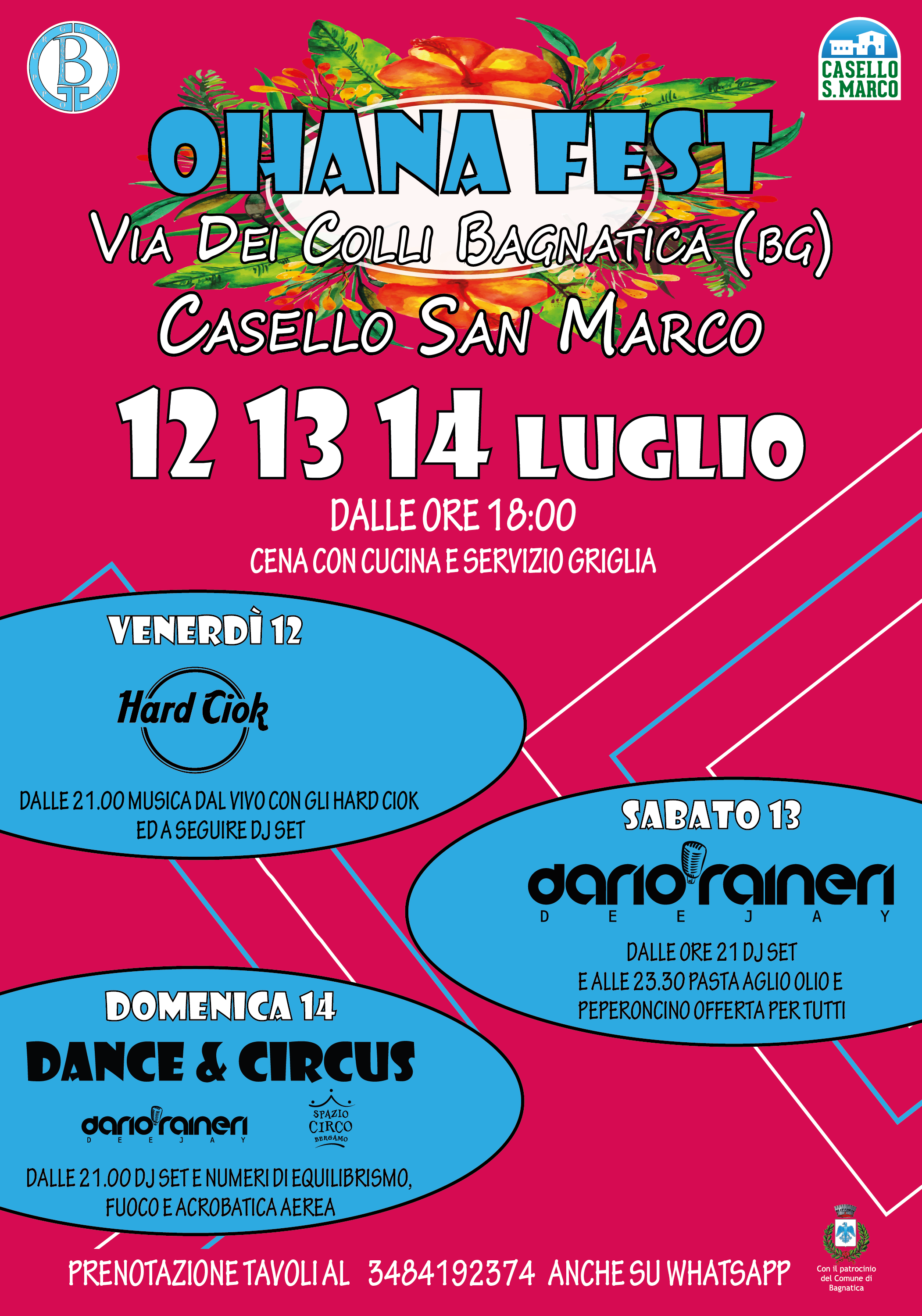 Nella suggestiva location del Casello San Marco, le associazioni APS Gruppo Giovani Bagnatica e Casello San Marco organizzano la nona edizione dell’Ohana Fest.