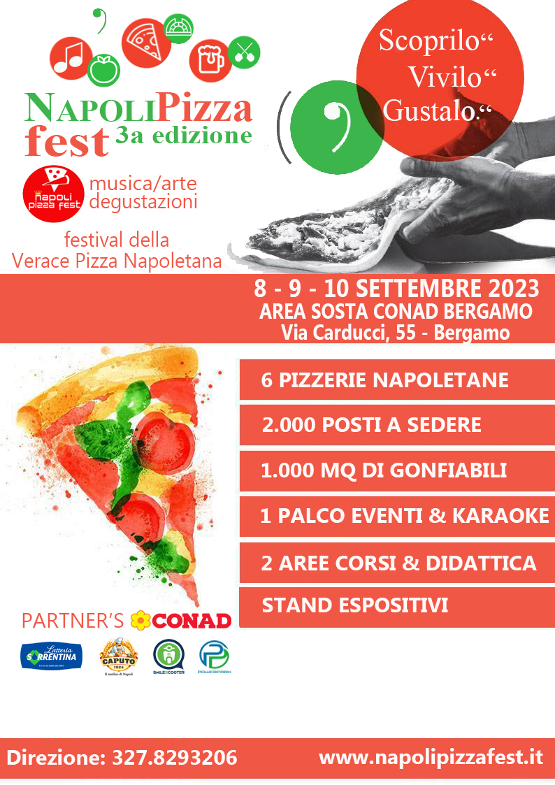 Ritorna a Bergamo il festival della verace pizza napoletana: eventi, corsi formativi e tanta pizza da gustare. Dopo lo stop della pandemia, ritorna in una nuova location, nell'ultima edizione sfornate quasi 20.000 pizze Margherita.