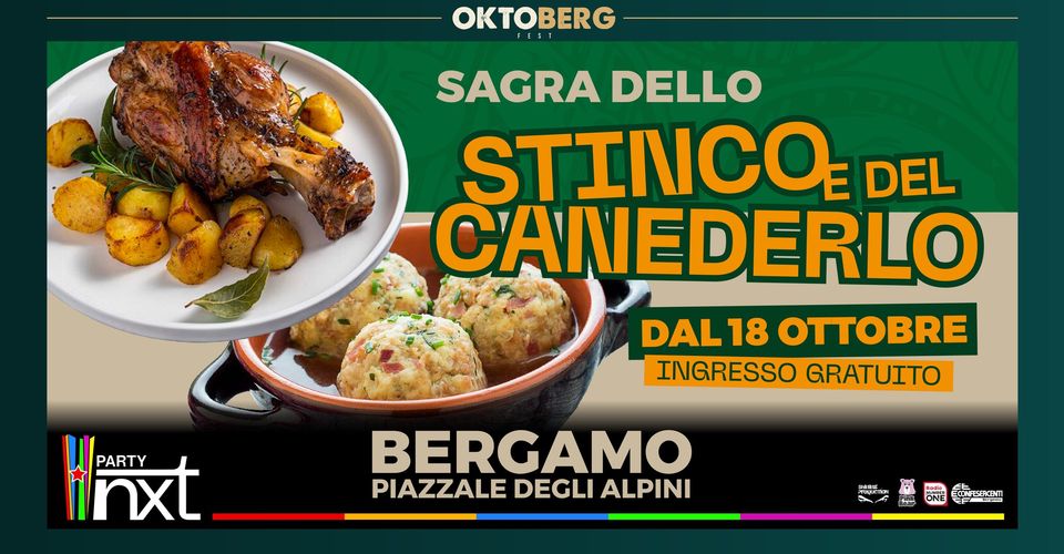 Dal 18 al 27 ottobre a Bergamo, l'OktoBERG Fest vi aspetta con la Sagra dello Stinco e dei Canederli ! Un mix esplosivo di sapori bavaresi e bergamaschi: stinco, canederli, birra artigianale e tanto altro! Non perdere questa festa unica!