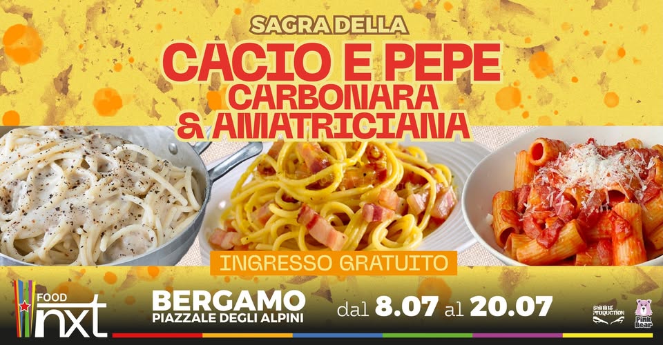 La Sagra della Cacio e Pepe, Carbonara & Amatriciana si svolgerà a Bergamo in due sessioni: dall’8 al 13 luglio e dal 15 al 20 luglio presso Piazzale degli Alpini. L’ingresso è gratuito.