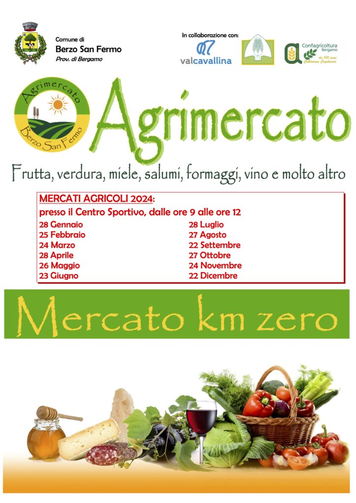 Mercato agricolo a Berzo San Fermo! Domenica mattina, andate a fare il pieno di prodotti freschi e a km zero! Frutta, verdura, formaggi, salumi e tanto altro.