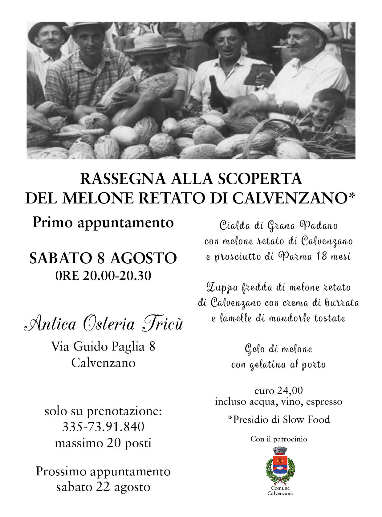 Il prossimo appuntamento con la rassegna gastronomica sarà sabato 22 agosto.