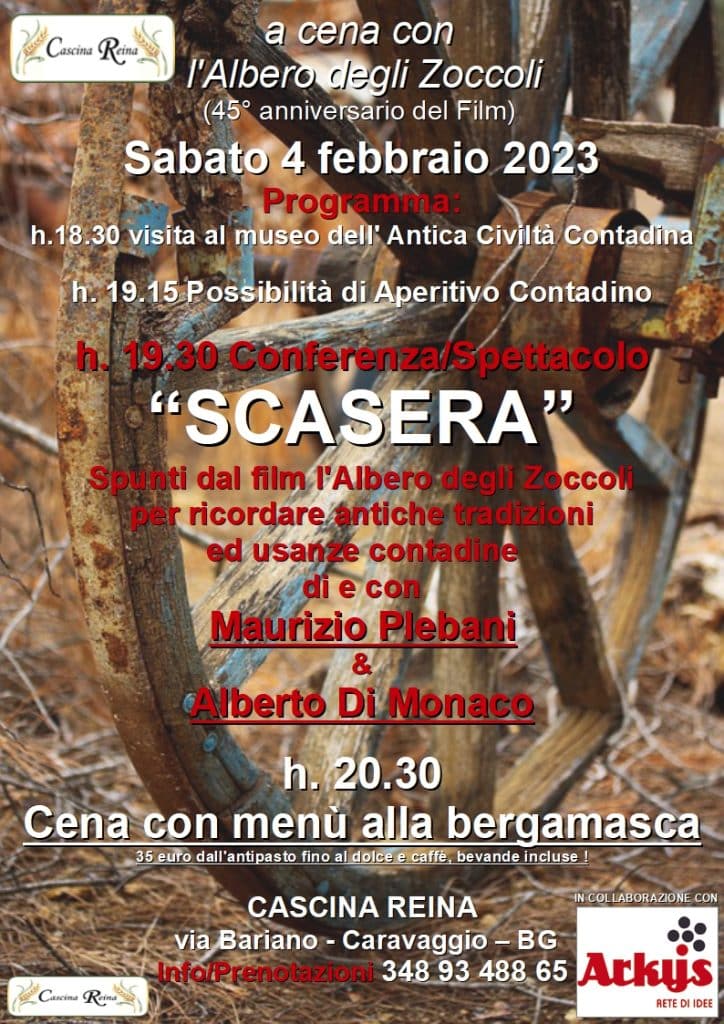 La cascina Reina propone una conferenza spettacolo con spunti dal film “L’Albero degli Zoccoli” per ricordare antiche tradizioni ed usanze contadine.