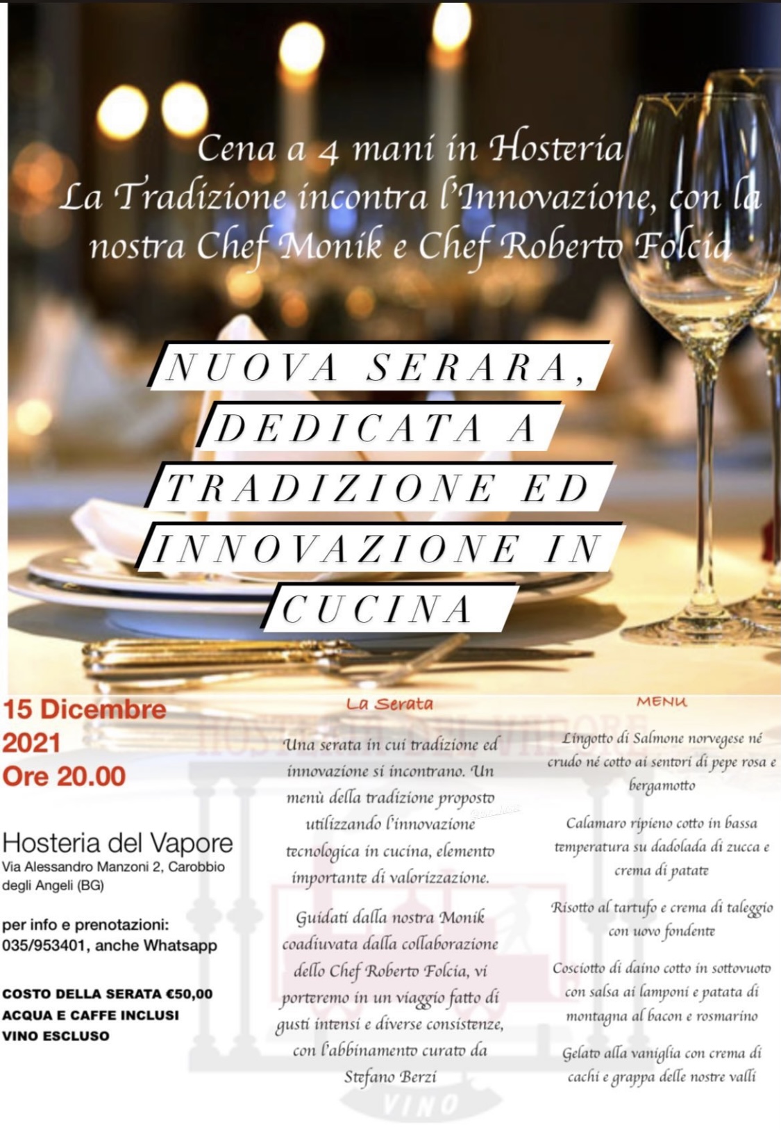 Mercoledì 15 dicembre alle 20 all'Hosteria del Vapore di Carobbio degli Angeli una serata tutta da assaggiare!