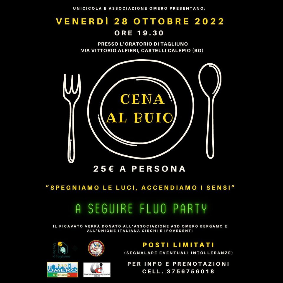 Organizzata in collaborazione con l'Associazione Omero di Bergamo, a cui verrà donato il ricavato della cena, oltre che all'Unione Italiana Ciechi e Ipovedenti.