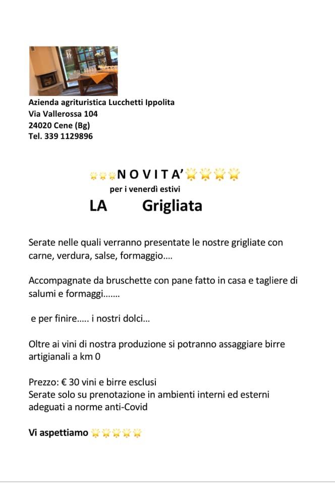 Per i venerdì estivi l'Azienda agrituristica Lucchetti Ippolita propone le grigliate con carne, verdura, salse, formaggio... e molto altro!