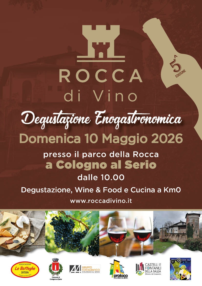 Parte la quinta edizione di ยซRocca di Vinoยป, domenica 10 maggio a Cologno al Serio nella splendida cornice di Parco Rocca si terrร la giornata dedicata al vino, al territorio e al valorizzare le tradizioni.