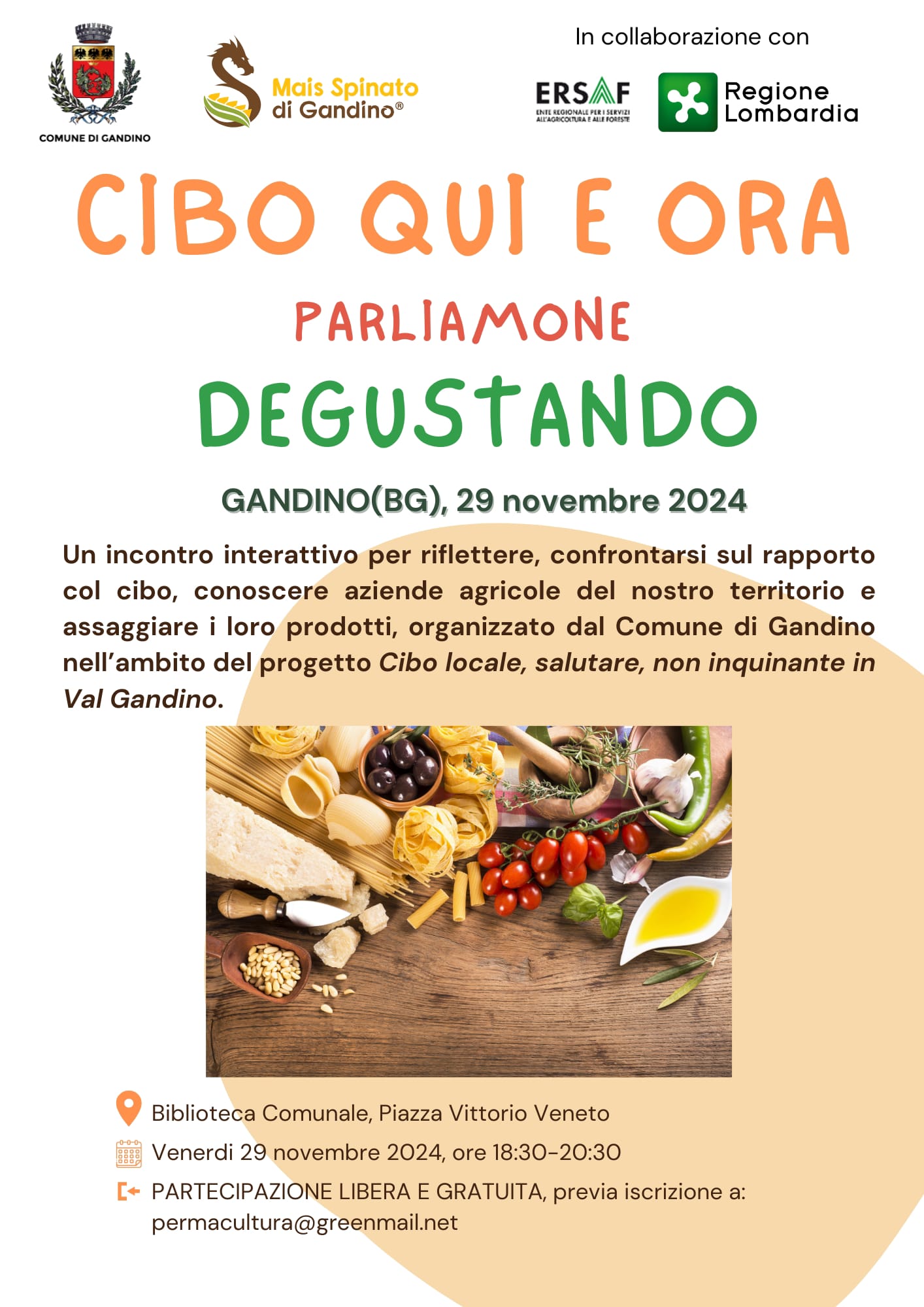 Evento organizzato dal Comune di Gandino, nell'ambito del progetto “Cibo locale, salutare, non inquinante in Val Gandino”, in collaborazione con Mais Spinato di Gandino, ERSAF e Regione Lombardia.