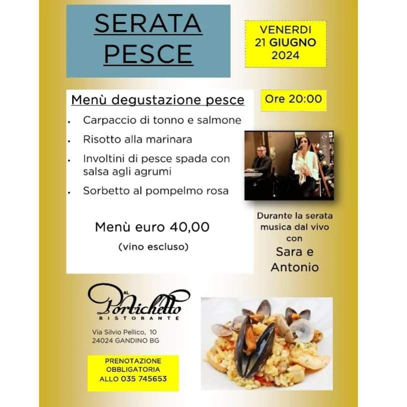 Menù degustazione di pesce al ristorante al Portichetto, venerdì 21 giugno