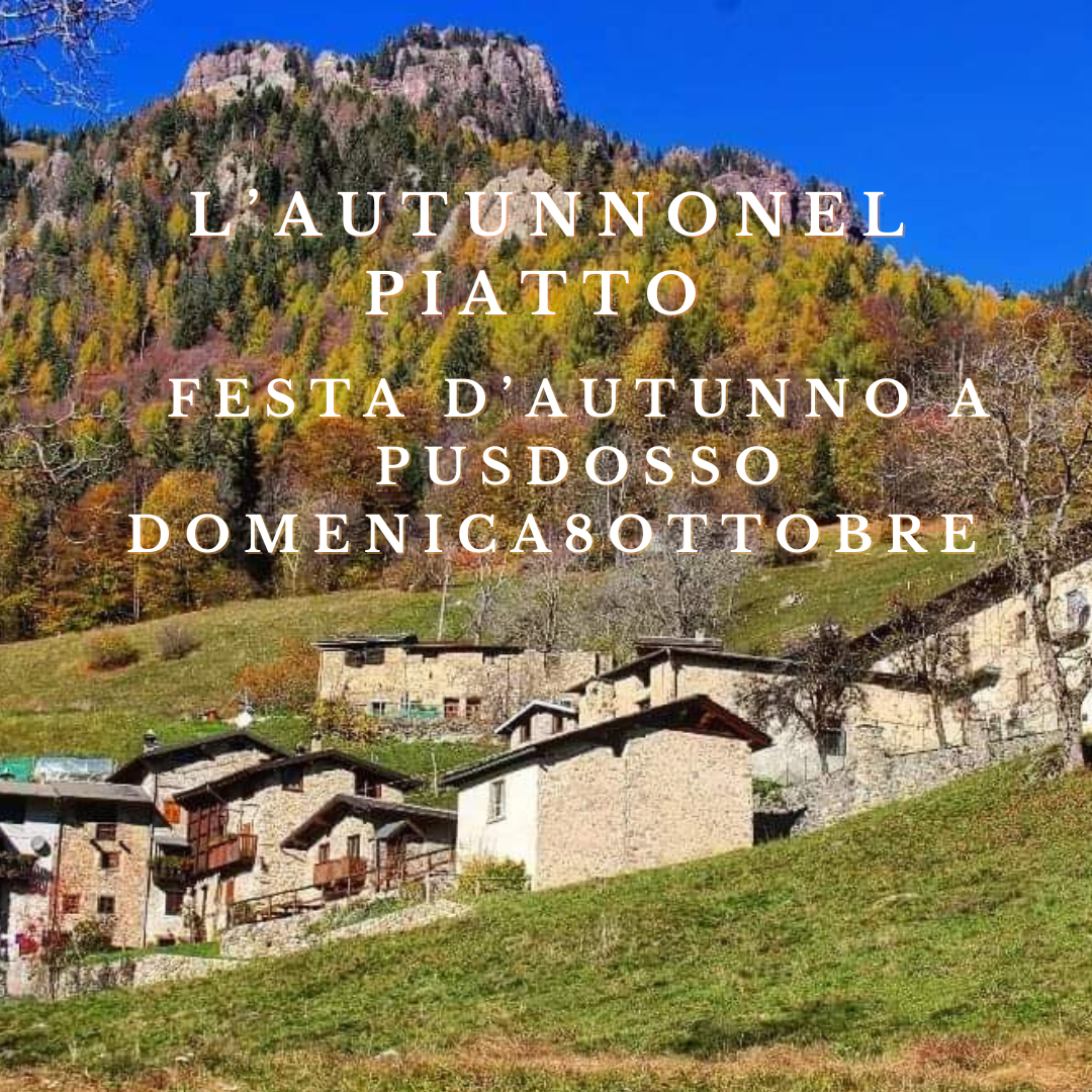 Festa d'autunno nel suggestivo borgo antico di Pusdosso, una giornata che sarà dedicata allo stare insieme a pranzo, il quale sarà a base degli antichi sapori della tradizione del borgo.