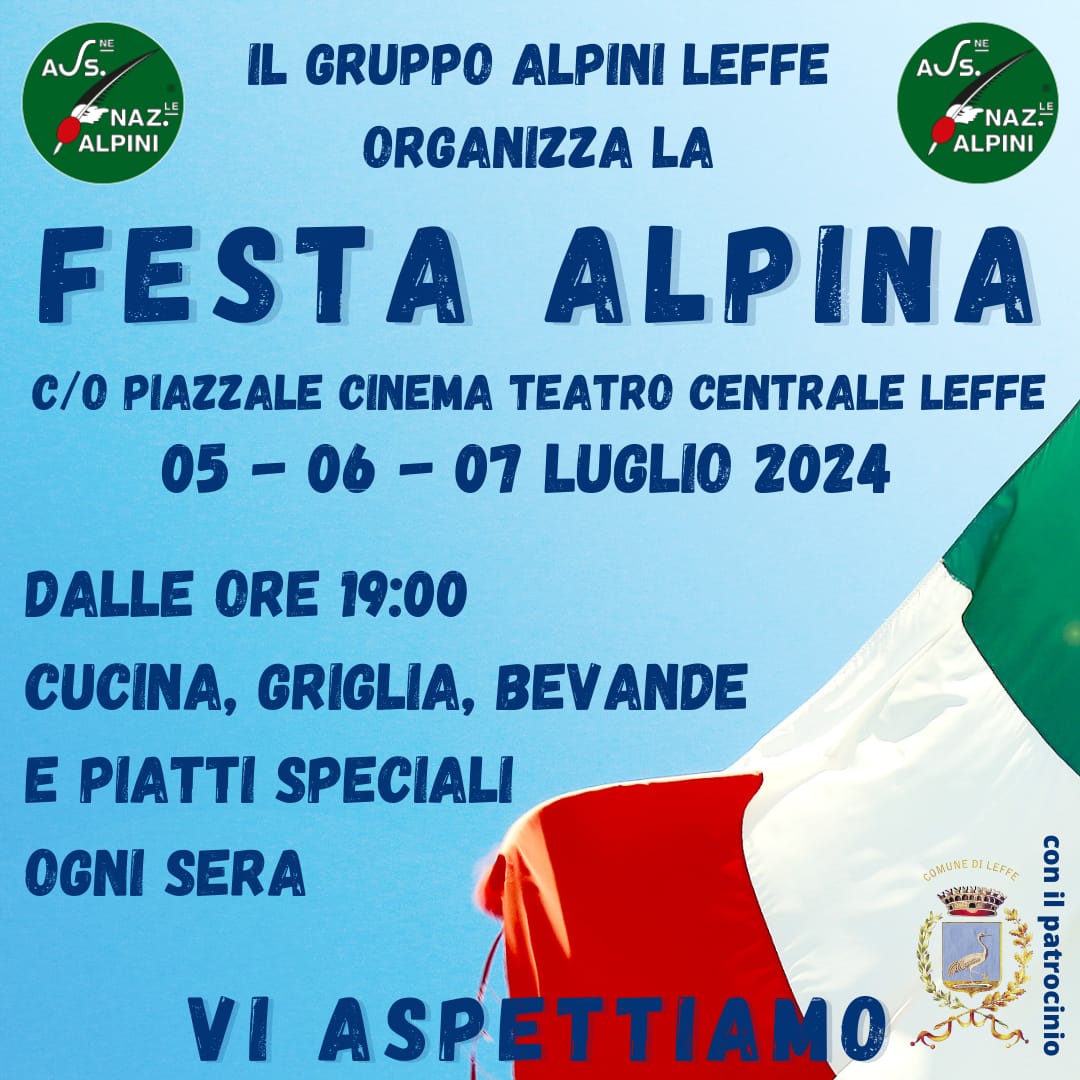 Il weekend da venerdì 5 luglio a domenica 7, il Gruppo Alpini di Leffe vi aspetta nel piazzale del Cinema Centrale per la Festa Alpina!