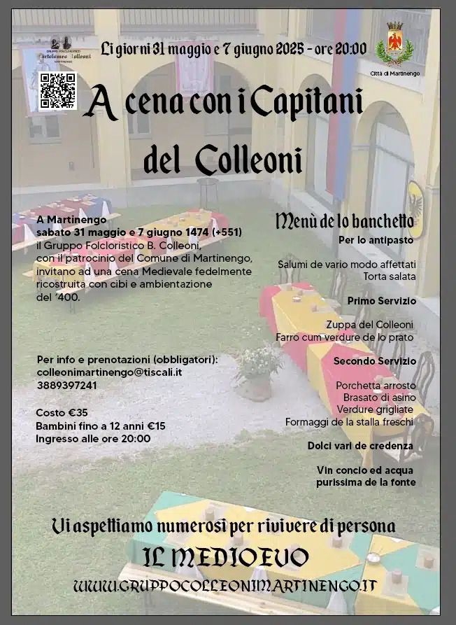 Il Gruppo Bartolomeo Colleoni di Martinengo presenta “A cena con i capitani del Colleoni“.