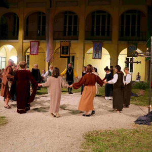 Saremo ospiti di Bartolomeo Colleoni e della moglie Tisbe Martinengo per goderci una luculliana cena organizzata con cibi medievali e rallegrati da giullari e sputafuoco, il tutto in una atmosfera ricreata fedelmente solo con torce e bracieri.