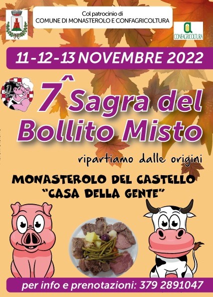 Gli organizzatori consigliano, per la partecipazione alla Sagra, di indossare una tipica camicia a quadri da contadino. È inoltre disponibile un’area per il parcheggio dei camper e c’è la possibilità di asporto del cibo con contenitori propri. La Sagra del bollito misto è patrocinata dal Comune di Monasterolo al Castello e da Confagricoltura. Per info e prenotazioni 379.2891047. Come recita lo slogan sulla locandina: ripartiamo dalle origini!
