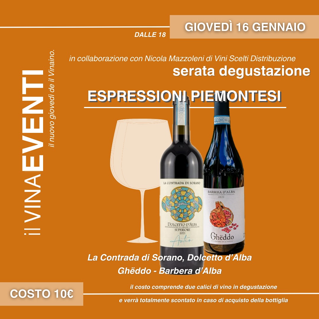 Il 16 gennaio degustazione vini con Nicola Mazzoleni di Vini Scelti Distribuzione! Conosceremo due espressioni piemontesi DOC: Dolcetto d’Alba de La Contrada di Sorano e il Barbera d’Alba di Gheddo Vini.