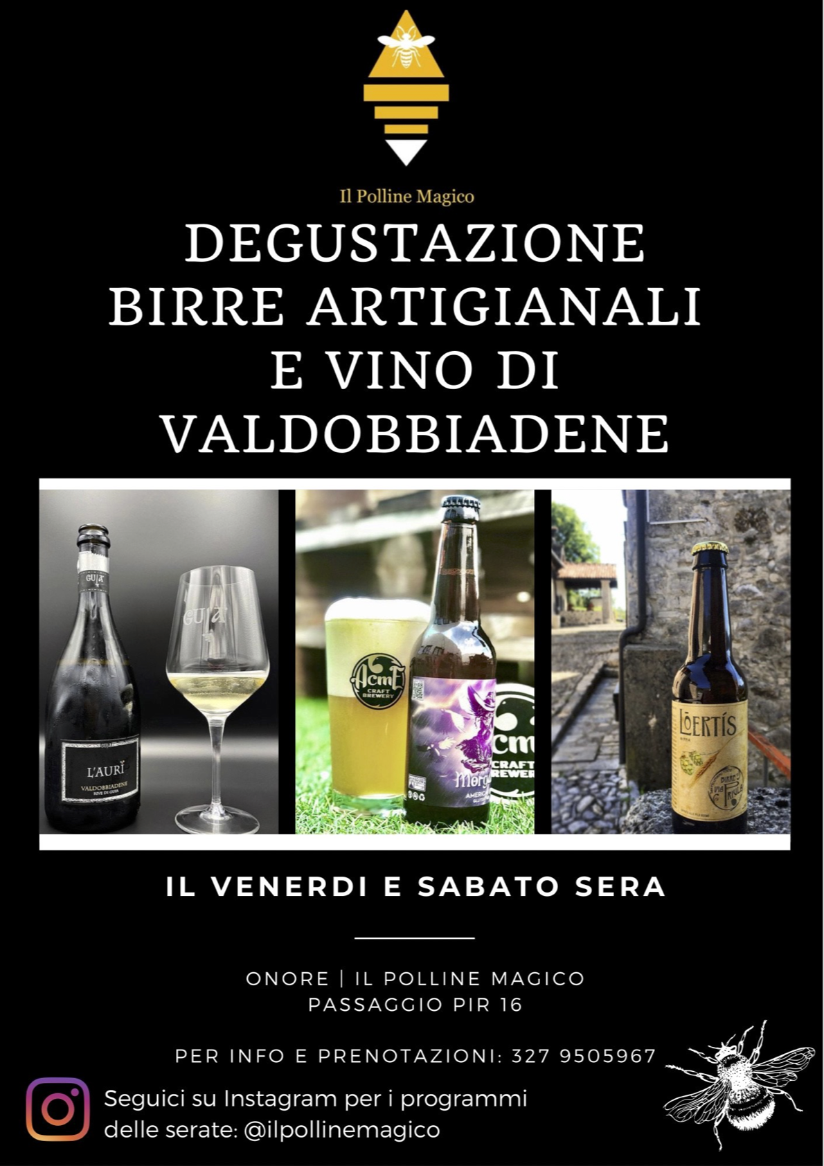 Tutti i venerdì e sabato sera, il Polline Magico di Onore vi aspetta per degustare in compagnia birre artigianali e vini del territorio, accompagnati da stuzzichini golosi per non rimanere a stomaco vuoto!