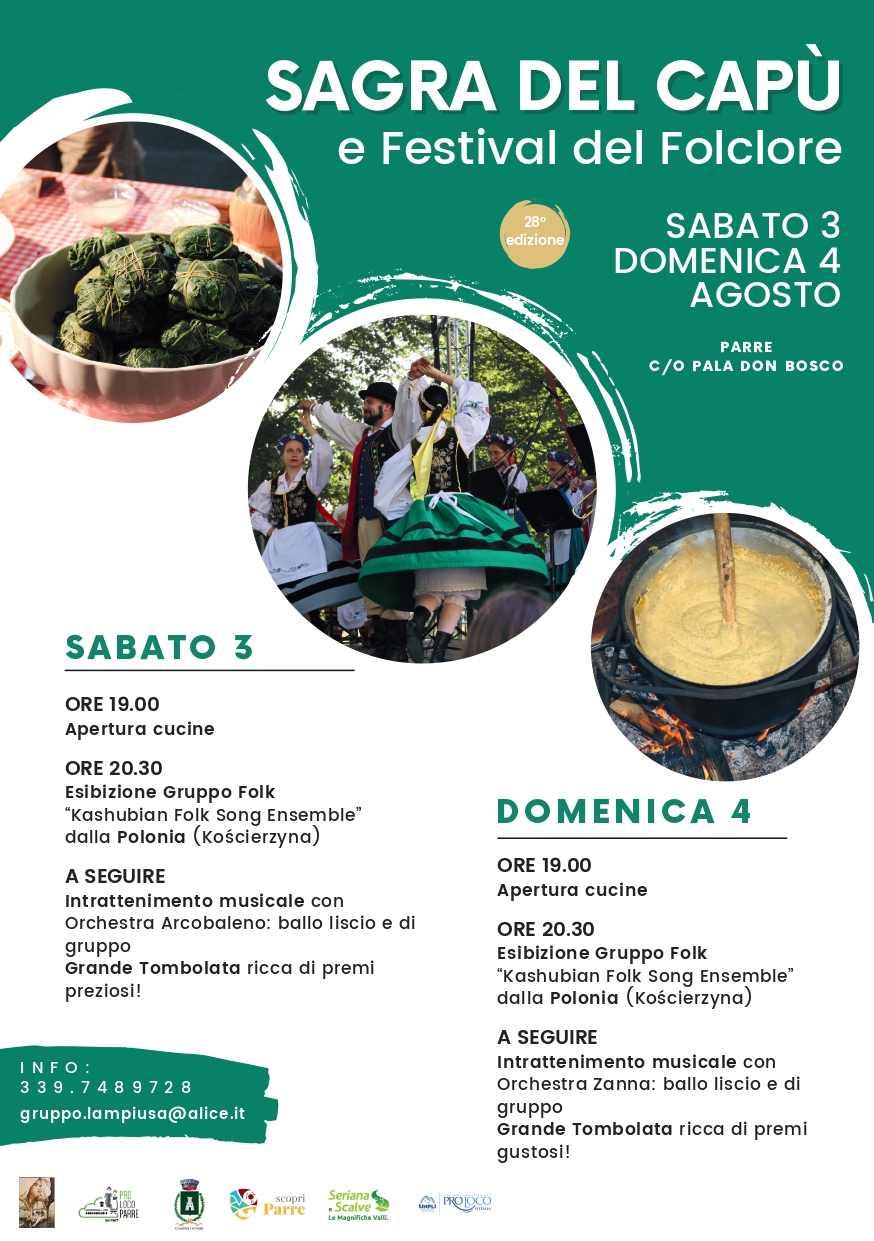 Il Gruppo Folcloristico Lampiusa in collaborazione con la Pro Loco Parre organizza la 28^ Sagra del Capù e il Festival del Folclore.