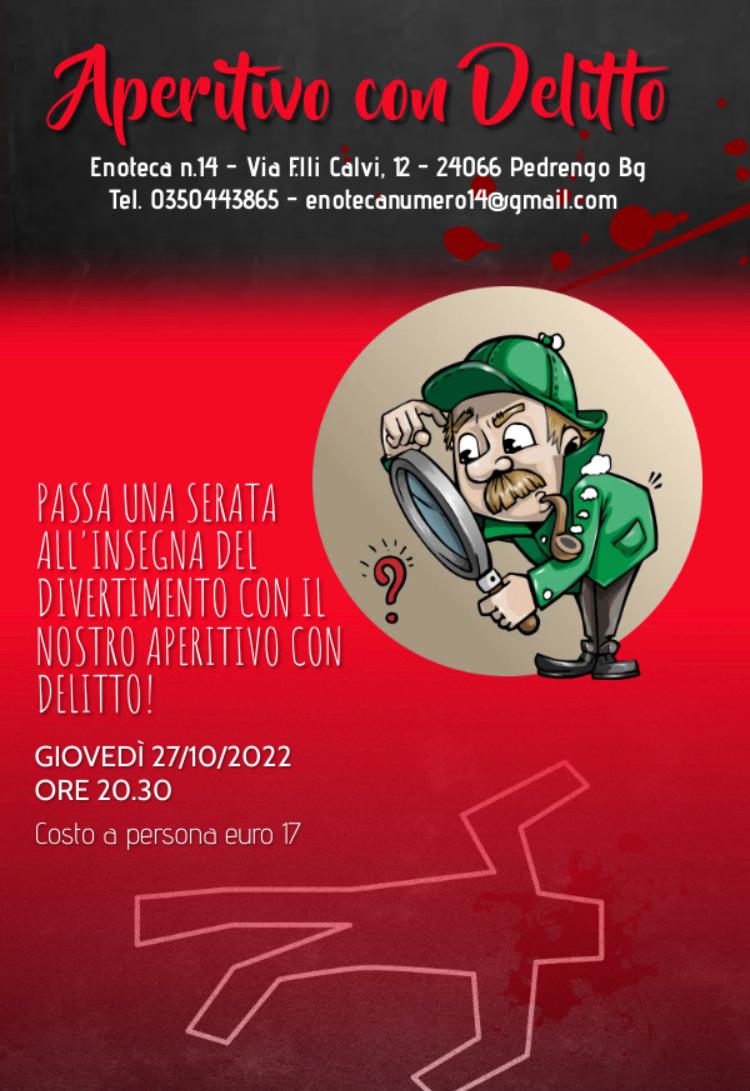 Giovedรฌ 27 ottobre passa una serata allโinsegna del divertimento e dei sapori presso lโEnoteca Numero 14 a Pedrengo con lโAperitivo con Delitto!