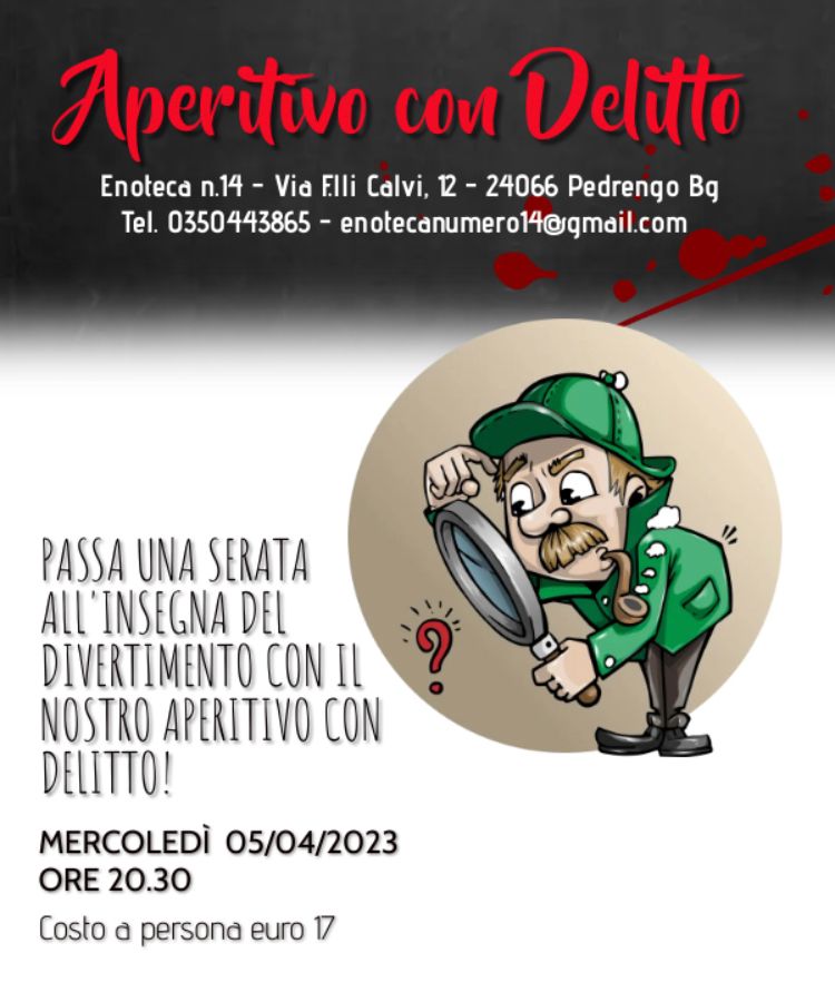 Questa sera appuntamento speciale all'enoteca: aperitivo con delitto, una serata all'insegna del divertimento per tutti!.