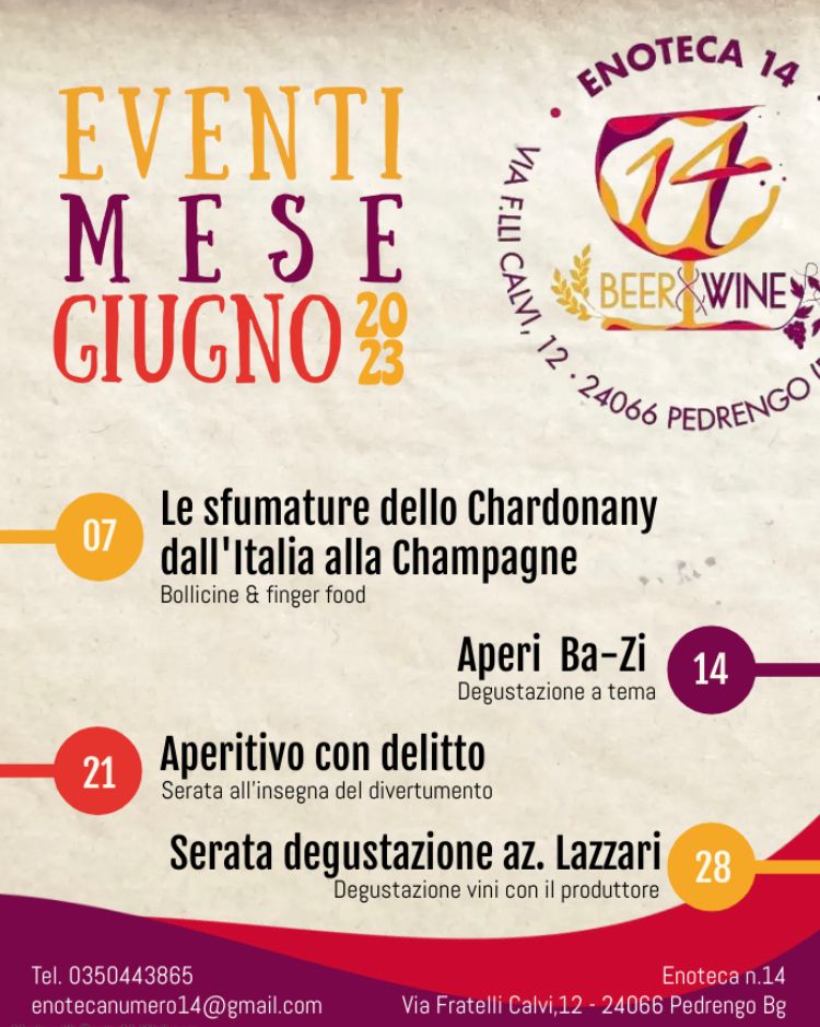 Enoteca 14 vi aspetta con un mese ricco di proposte e novità!