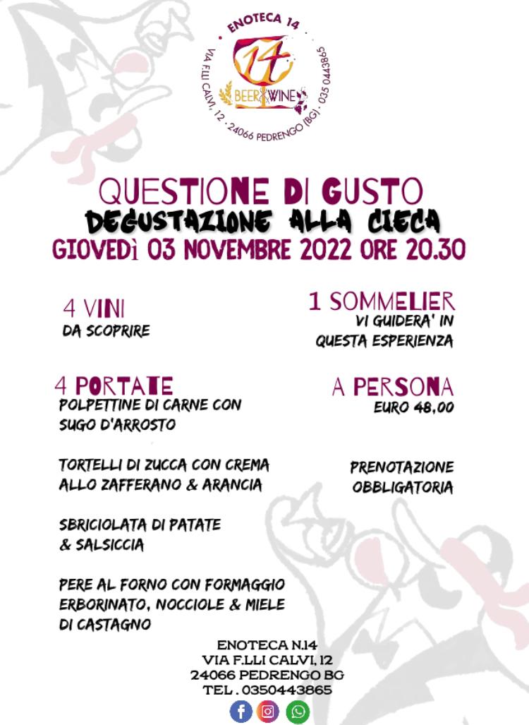 Enoteca 14 di Pedrengo vi presenta un nuovo ed imperdibile appuntamento.