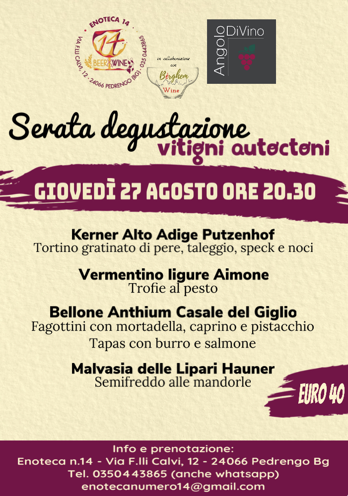 Serata degustazione come protagonisti avremo i vitigni autoctoni.
