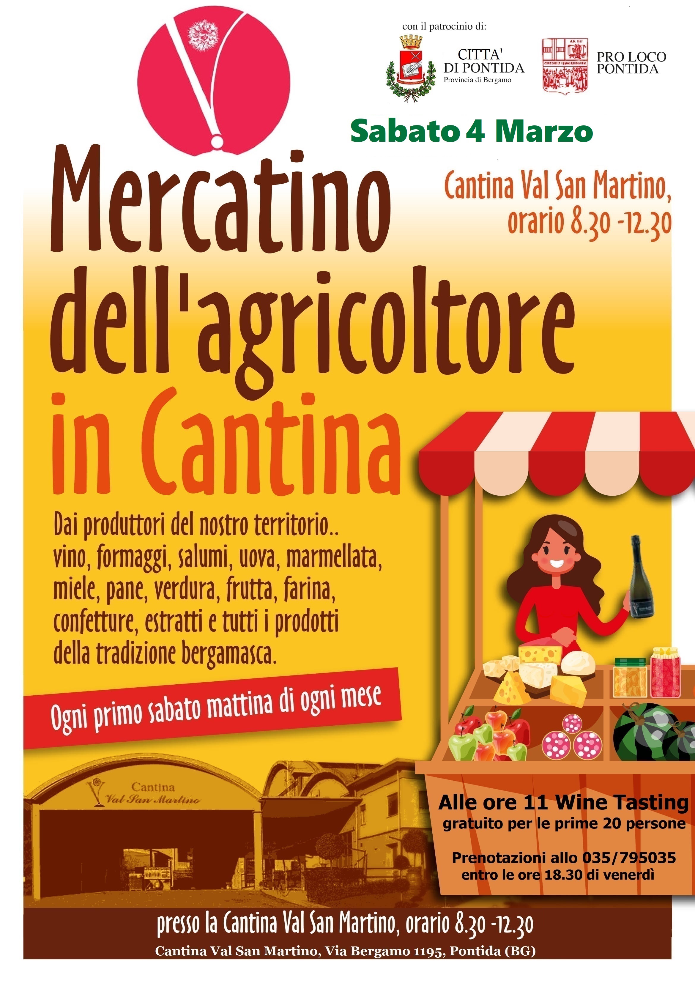 In occasione dei sabati del Mercatino alle ore 11 ci sarà un wine tasting gratuito offerto dalla Cantina per le prime venti persone che si iscriveranno entro le ore 18 del venerdì chiamando lo 035.795035 o WhatsApp al 335.5200507.