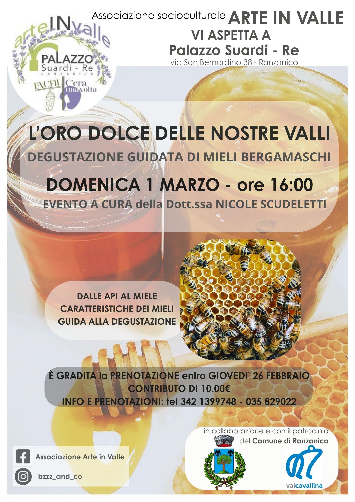 Al Palazzo Suardi Re di Ranzanico, è in programma una degustazione di miele a cura di Arte in Valle e della dott.ssa Nicole Scudeletti.