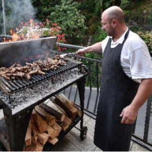 Grigliata mista di carne servita con patate al forno e salse con cosciotto d’agnello in porchetta, galletto alla brace, costine cotte a bassa temperatura e ripassate alla brace, coppa di maialino, salsiccia ai semi di finocchio Dessert à la carte