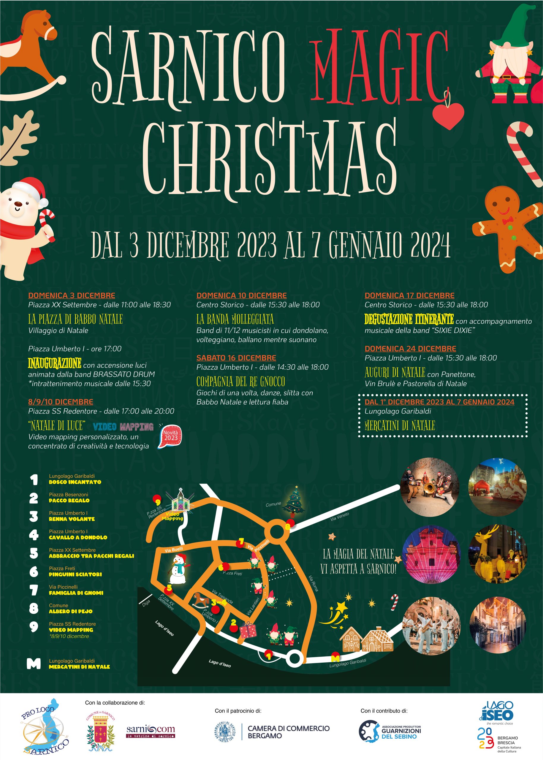 In occasione di Sarnico Magic Christmas, domenica 17 dicembre, dalle 15:30 alle 18:00, si terrà una Degustazione Itinerante per il Centro Storico di Sarnico. Un pomeriggio nella storica “Contrada” con l’Associazione Commercianti ed Esercenti, Associazione Alpini, Istituto “Serafino Riva” e ristoratori di Sarnico. Intrattenimento con la band “SIXIE DIXIE”.