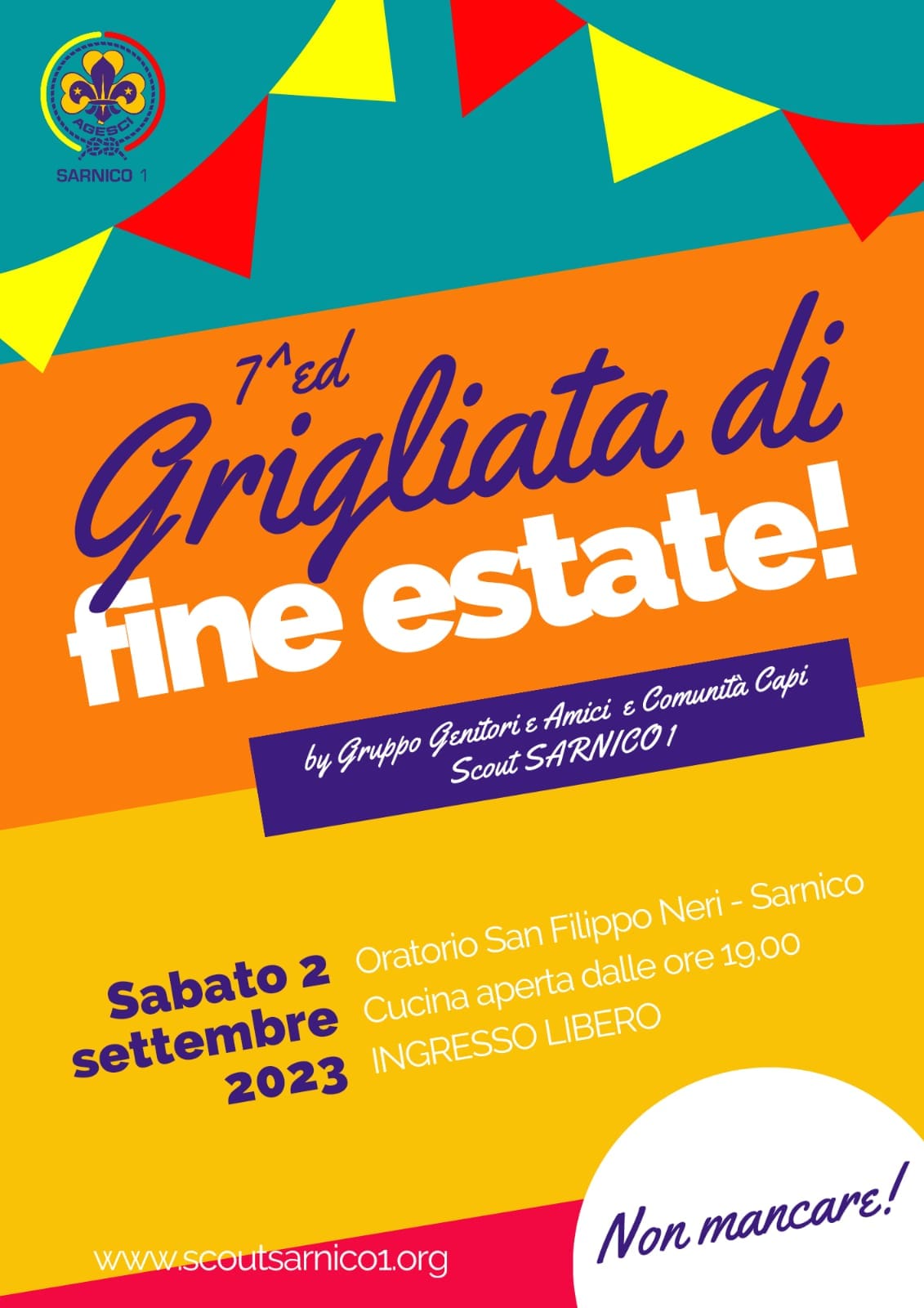 Sabato 2 settembre 2023, si terrร la 7a Grigliata di Fine Estate presso l'Oratorio San Filippo Neri di Sarnico.